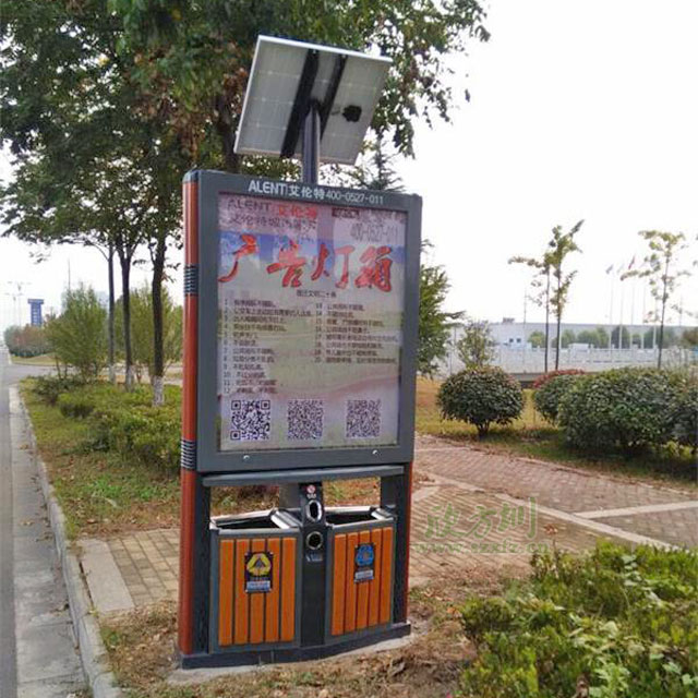 ? 鋼木廣告垃圾桶生產(chǎn)制作常用的材質(zhì)有冷軋鋼、不銹鋼、玻璃鋼;產(chǎn)品造型經(jīng)典時(shí)尚,整體結(jié)構(gòu)牢靠,箱體箱底連體式設(shè)計(jì),底座可固定地上,抗打擊,抗風(fēng)力??刂葡潴w高度,廣告桶高度設(shè)計(jì)在1.8米左右,符合城市規(guī)劃要求。獨(dú)特的抽屜式斜插內(nèi)桶減輕環(huán)衛(wèi)工人清理勞動(dòng)強(qiáng)度,投口與清理口一體設(shè)計(jì),便于垃圾入箱及清理。廣告垃圾箱具有投入成本低,直接受眾效果好。
