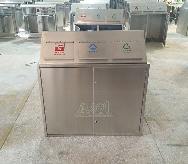 ? 這次投放在張家界碧桂園小區(qū)的是我欣方圳垃圾桶廠家生產(chǎn)的JP21環(huán)保分類垃圾桶,是一個(gè)由可回收垃圾桶、不可回收垃圾桶以及其他垃圾桶組成的三分類不銹鋼垃圾桶。不銹鋼分類垃圾桶本身不用噴塑所以不會(huì)出現(xiàn)掉色現(xiàn)象,能夠保證美觀,全身不銹鋼制作的分類垃圾桶還具有防火功能,堅(jiān)固耐用。欣方圳不銹鋼垃圾桶特點(diǎn):耐用性高 防火功能好。不銹鋼本色靚麗,給人以炫目高大尚的感覺。
