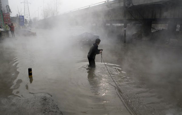 建筑垃圾填入污井導(dǎo)致西安街頭水漫金山
