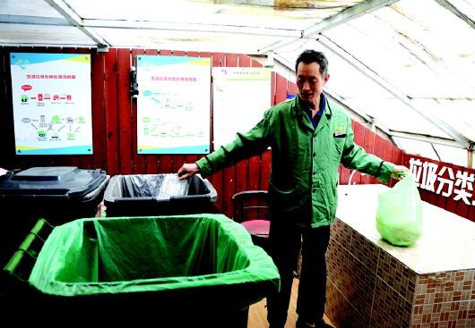 記者觀察時(shí)注意到,湛山小區(qū)9號(hào)樓前的垃圾桶垃圾分類做得非常好,綠色和灰色的垃圾袋分別都在各自的垃圾桶中,顯得井井有條。記者在9號(hào)樓居民鄒翠蓮家中看到,綠色垃圾桶就放在餐桌旁,上面還套著綠色的垃圾袋,方便就餐過(guò)程中扔廚余垃圾。而裝其它垃圾的灰色垃圾桶則放在陽(yáng)臺(tái)上。?“將兩個(gè)垃圾桶分開放置,也是為了避免垃圾不分類亂扔。剛開始的時(shí)候,確實(shí)有些不適應(yīng),自己和家人還得繃著這根弦,想想什么垃圾放什么顏色的垃圾桶,現(xiàn)在我和家人早都養(yǎng)成習(xí)慣了,廚余垃圾扔餐桌旁的綠袋子,其它垃圾扔陽(yáng)臺(tái)上的灰袋子?!?3歲的鄒翠蓮說(shuō),垃圾分類就要從“源頭”開始,如果大家在家里不分好,環(huán)衛(wèi)工人面對(duì)那么大的垃圾量很難再給分開。?