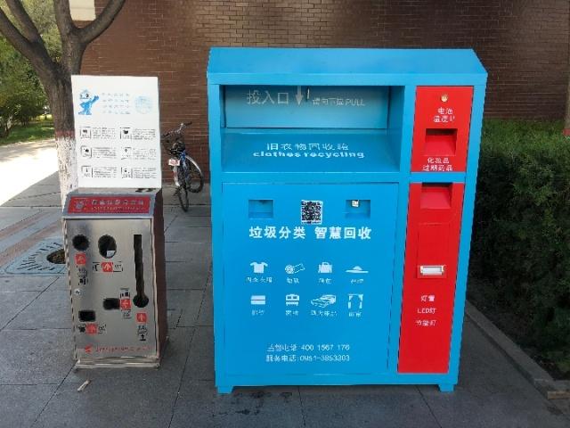 燕依園社區(qū)是銀川市生活垃圾分類(lèi)示范區(qū)之一,所轄兩個(gè)小區(qū)常住人口超八千人。記者走訪看到,小區(qū)里擺放著四類(lèi)彩色分類(lèi)垃圾桶,還安放了可分區(qū)投放電池、溫度計(jì)、化妝品、過(guò)期藥品、紡織品等在內(nèi)的智能垃圾箱以及廢舊衣物回收箱。