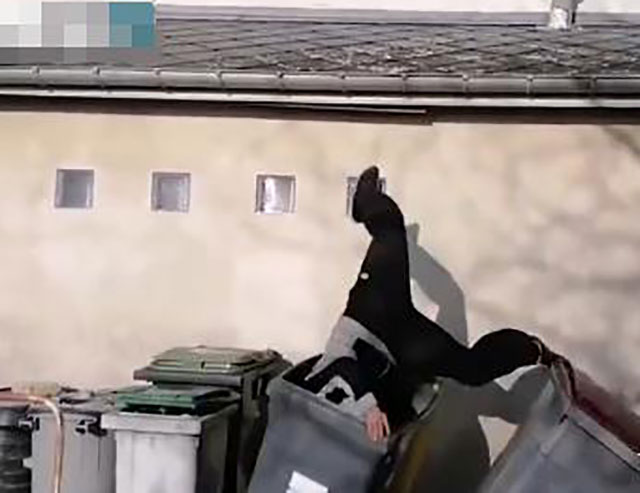 由于國內(nèi)還不具有跑酷的條件,所以跑酷這樣的運(yùn)動在外國比較常見。一位外國的跑酷愛好者,最近在一次和好友的跑酷活動中,卻不小心掉進(jìn)了垃圾桶。據(jù)這位跑酷愛好者說,當(dāng)時(shí)他輕易而舉就爬上了一堵12英尺高的圍墻,可是在準(zhǔn)備往下跳的時(shí)候,看見了放在圍墻下面的幾個(gè)垃圾桶,于是他就想從圍墻上跳下去,然后從垃圾桶上蹦過去??墒钱?dāng)他剛一跳下去,不慎腳下一滑,直接往另一個(gè)垃圾桶扎了進(jìn)去。不少網(wǎng)友表示,看他摔倒真是喜劇滿滿。
