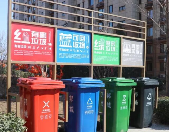 萬邦物業(yè)更換分類垃圾桶, 提升社區(qū)“顏值”
