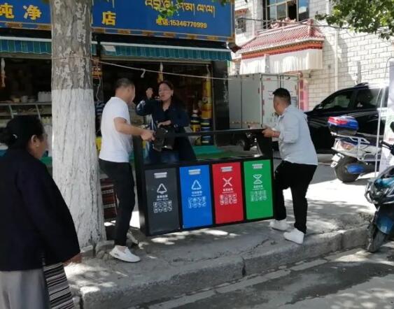 垃圾分類回收利用是處理垃圾前的重要環(huán)節(jié)。通過分類投放、分類收集等過程,把有用物資從垃圾中分離出來重新回收、利用,可以變廢為寶。比如舊書舊報紙、爛銅破鐵等回收利用后,既能帶來經(jīng)濟收入,又減少了垃圾處置量。為提高轄區(qū)居民的垃圾分類意識,8月14日,阿壩林卡社區(qū)在轄區(qū)范圍內(nèi)投放了十多組分類垃圾桶,號召社區(qū)居民合理投放垃圾。