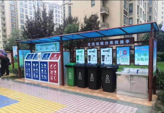 垃圾分類工作實施之前,生活小區(qū)垃圾收集處理一般是在小區(qū)定點位置設置垃圾分類站或垃圾分類亭、放置垃圾桶,然后由保潔人員定時清理。雖然多數(shù)小區(qū)同一位置會放置不同色彩的垃圾桶,并且注明不同色彩垃圾桶所對應的垃圾種類,為了增強居民自覺踐行垃圾分類的意識,提升環(huán)保理念,完善垃圾分類工作,很多小區(qū)已經撤銷了原來的垃圾桶分散放置,改為小區(qū)垃圾統(tǒng)一收集,統(tǒng)一分類。因此分類垃圾桶及分類垃圾站成了很多小區(qū)必不可少的垃圾收集處理設施。