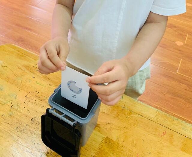 游戲中,教師在游戲軟墊上搭建小迷宮,在迷宮的入口處放置各類生活垃圾模型,迷宮出口設(shè)置多種攀爬障礙,障礙物的盡頭依次排開的是四色卡通分類垃圾箱。小朋友們在入口處拿起生活垃圾模型,然后按通過所有障礙后將手中的垃圾模型準確投入分類垃圾箱,每投對一件垃圾模型,小伙伴們都會一起歡呼慶祝。
