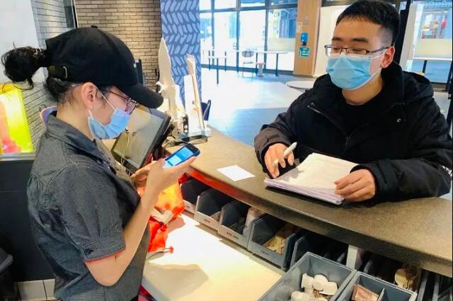 為了不影響商鋪的生意,工作人員充分利用商鋪的閑暇時間一一發(fā)放垃圾分類宣傳冊,用顯淺易懂的方式為店主講解垃圾分類知識,耐心解答店主提出的日常垃圾分類難題,同時為每家商鋪張貼了分類投放指南和垃圾桶分類標(biāo)識,引導(dǎo)大家準(zhǔn)確投放。在此過程中,工作人員發(fā)現(xiàn)雖“偉明餐廚垃圾回收”小程序已上線多時,仍有不少商戶存在不懂操作、無法登陸等問題,為此,現(xiàn)場工作人員不厭其煩地指導(dǎo)商戶進(jìn)行登陸、記錄等,確保每位商戶的問題得到實質(zhì)解答。