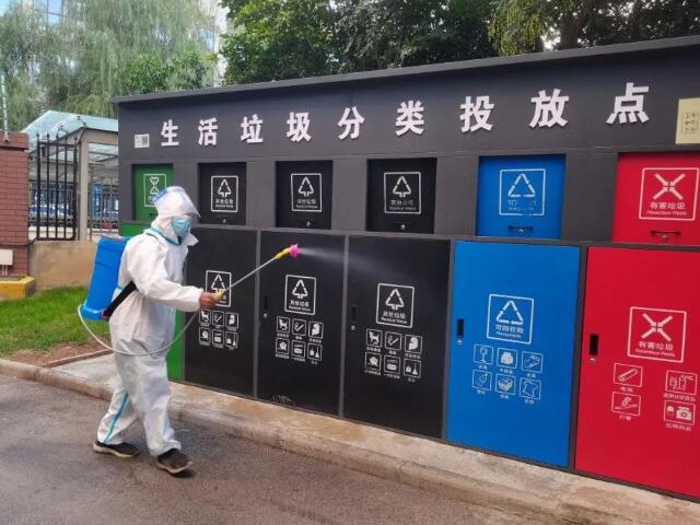 防疫期間,對垃圾分類投放點進(jìn)行定時消殺作業(yè),是小區(qū)物業(yè)垃圾分類人員的日常工作之一。工作人員每日對投放口、垃圾桶、分揀環(huán)境做好消殺,并增加對垃圾桶清洗頻率,做到不留一處死角,最大限度地控制疫情傳播風(fēng)險。