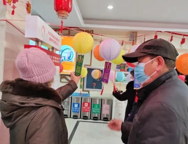 現(xiàn)場(chǎng)張燈結(jié)彩,人頭攢動(dòng),活動(dòng)在歡聲笑語(yǔ)中拉開(kāi)序幕?;舾吒邟炱穑瑹羯蠈?xiě)上謎語(yǔ),供人們猜答,答對(duì)給予一定獎(jiǎng)勵(lì)。如“一日之功(打一新興的無(wú)污染能源)”“垃圾里都有它(打一常見(jiàn)字)”等垃圾分類內(nèi)容的謎題妙趣橫生,大小朋友一個(gè)個(gè)饒有興趣地猜字謎,有的三三兩兩熱烈討論,有的緊盯謎面凝神思考,有的猜出謎底興奮不已。猜對(duì)謎底的大小朋友們還將得到一份精美禮品。