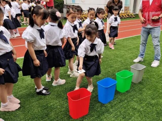 活動上,垃圾分類宣傳員和志愿者,首先帶領小朋友們參觀了生活垃圾分類知識宣教墻,并講解生活垃圾分類小知識。  “可回收物放藍色、有害垃圾放紅色、廚余垃圾放綠色、其他垃圾放黑色”。垃圾分類宣傳員拿著四色垃圾桶,教小朋友們生活中常見的垃圾該如何分類。河湖長制專班工作人員科普了水生態(tài)保護知識,鼓勵大家從小事做起,增強節(jié)水意識。