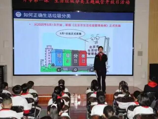 北京市城管執(zhí)法局、朝陽(yáng)區(qū)城管執(zhí)法局、勁松街道在陳經(jīng)綸中學(xué)帝景分校聯(lián)合開(kāi)展“開(kāi)學(xué)第一課”生活垃圾分類(lèi)主題城管開(kāi)放日活動(dòng)。