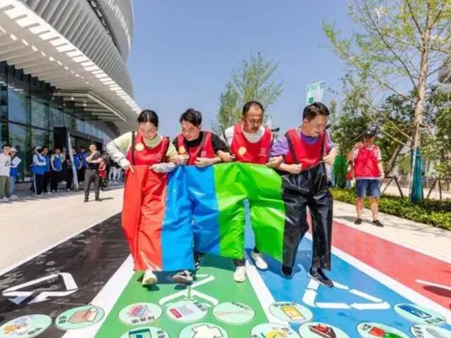 “5、4、3、2、1……”隨著大屏幕倒計時結束,分類我最“酷”、精準投放最省心、同心傳遞、垃圾分類是新時尚等多個集趣味性、運動性于一身的比賽項目輪番上演,環(huán)保及垃圾分類知識巧妙融入其中。寓教于樂中,20支隊伍紛紛手持任務卡依次出發(fā),奔向各個關卡,接受挑戰(zhàn)。