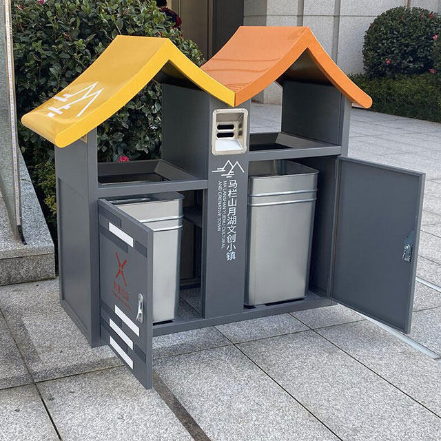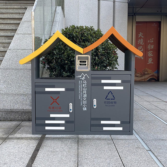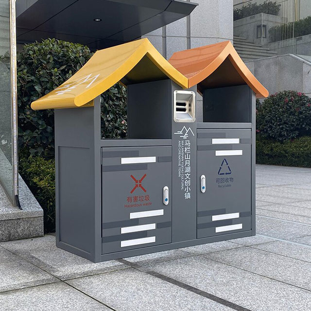其廣泛的適用性使其成為各類戶外場所的理想選擇。在公園中,它可以放置在各個(gè)景點(diǎn)和休息區(qū)域,引導(dǎo)游客進(jìn)行垃圾分類,保護(hù)公園的自然環(huán)境;在住宅小區(qū),它能擺放在每棟樓的入口處,方便居民分類投放垃圾,提升小區(qū)的整體環(huán)境品質(zhì);在學(xué)校校園內(nèi),能培養(yǎng)學(xué)生的環(huán)保意識,讓垃圾分類從小抓起。總之,這款戶外屋形鍍鋅板分類垃圾桶,憑借其獨(dú)特的設(shè)計(jì)和實(shí)用的功能,能夠在各種戶外場景中發(fā)揮重要作用,助力環(huán)保行動的深入開展。