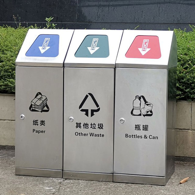 當(dāng)前位置:首頁 > 分類宣傳 > 環(huán)保尖兵密閉式三分類不銹鋼垃圾桶
