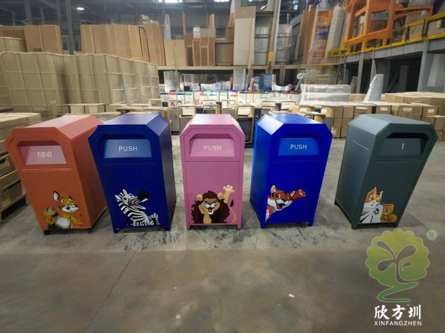 讓環(huán)保成為城市的可愛風(fēng)景定制UV打印卡通不銹鋼分類垃圾桶