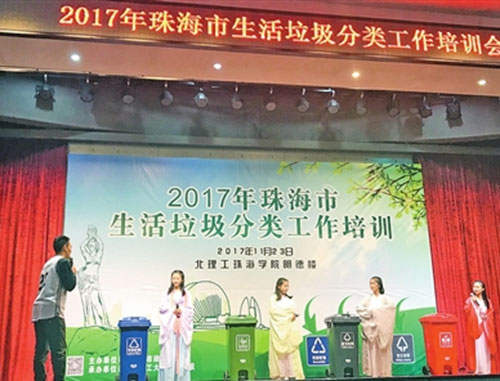 ? 會上,珠海市垃圾分類服務(wù)商深圳德立信環(huán)境工程有限公司總經(jīng)理夏三省、北京理工大學(xué)珠海學(xué)院博士彭祥捷對垃圾分類知識作了深入淺出的講解。北京理工大學(xué)珠海學(xué)院的志愿者們還帶來了一出生動的垃圾分類情景劇,為嚴(yán)謹(jǐn)?shù)呐嘤?xùn)會帶來了一絲趣味。當(dāng)天下午,與會成員來到中信生態(tài)環(huán)保產(chǎn)業(yè)園和海澄村,參觀垃圾分類試點(diǎn)單位,實(shí)地感受我市垃圾分類工作的開展情況。