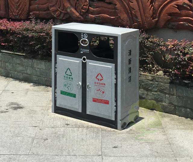 3、垃圾收容量大,能滿足各種環(huán)境的垃圾收納需求,廣泛擺放于戶外街道,商業(yè)廣場,花園小區(qū),廠區(qū)校園等戶外公共場所。
