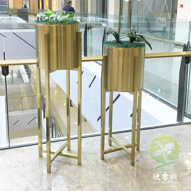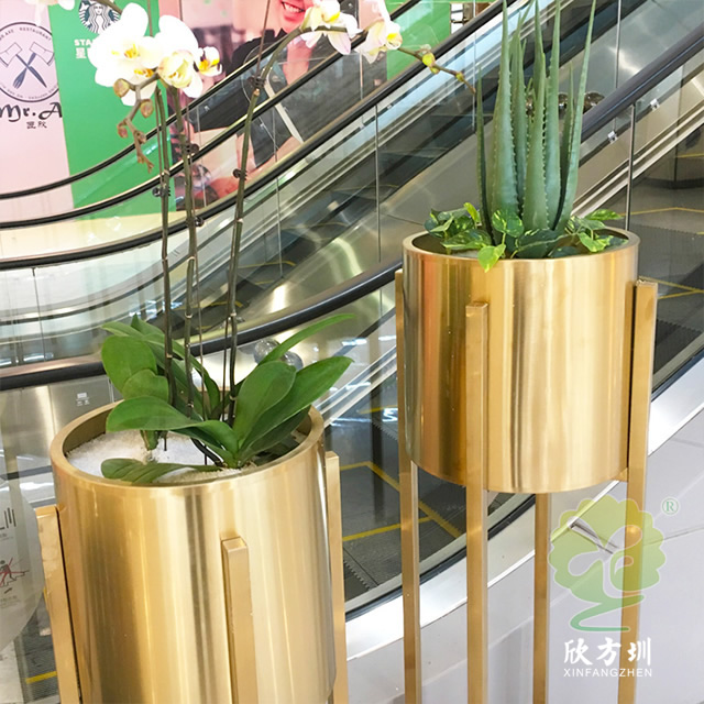 二、商場電鍍土豪金不銹鋼花架的擺放位置