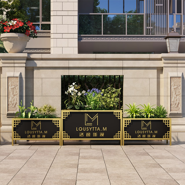 二、戶外電鍍鈦金長方形不銹鋼花箱的擺放位置
