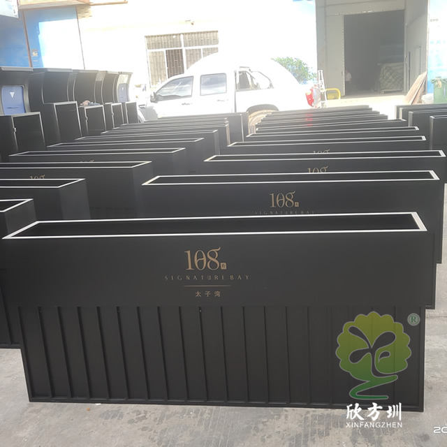 二、戶外長(zhǎng)方形黑色噴塑不銹鋼花箱的擺放位置