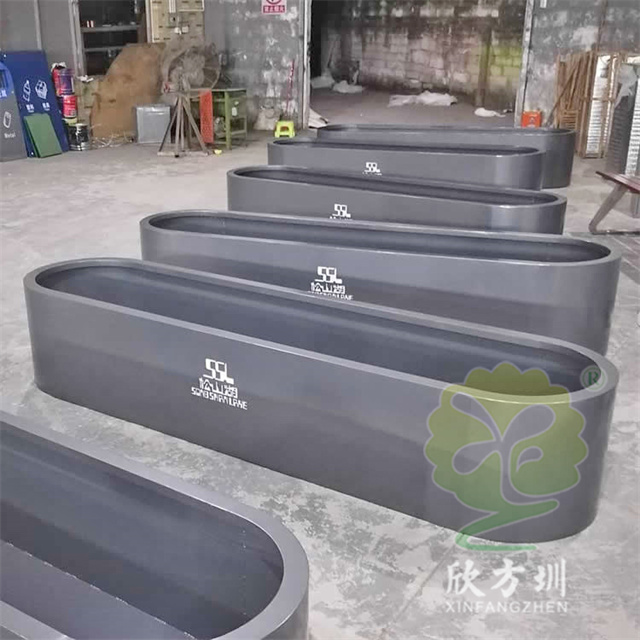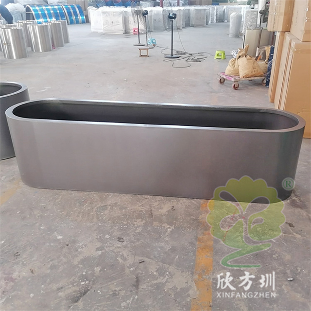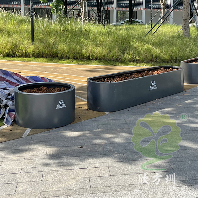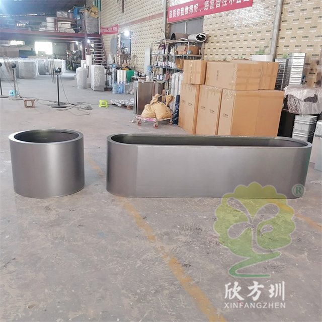 東莞松山湖公園鍍鋅板花盆花箱采用了3.0mm的鍍鋅鐵板制作而成,一款橢圓形一款圓柱形設(shè)計,金屬表面噴塑噴粉灰色,金屬花盆具有獨特的質(zhì)感,常能為室內(nèi)外環(huán)境增添一份高級感和時尚感,選用金屬花盆能夠大大降低成本,尺寸規(guī)格顏色可以定制。