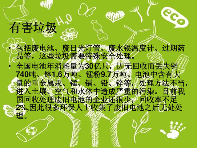 ??? 中國是人口大國,也是垃圾生產(chǎn)大國,可是我國的垃圾回收處理工作卻在國際上非常落后,最重要的原因就是垃圾分類這一步驟出了問題。垃圾分類宣傳任重道遠(yuǎn),不可不重視 ,尤其是學(xué)校里面的素質(zhì)教育。一個擁有垃圾分類意識與能力的學(xué)生走上社會后,才能成為垃圾環(huán)保事業(yè)的一份子。以下是初一垃圾分類ppt,希望能幫助學(xué)校的初一學(xué)生樹立正確垃圾分類觀念。