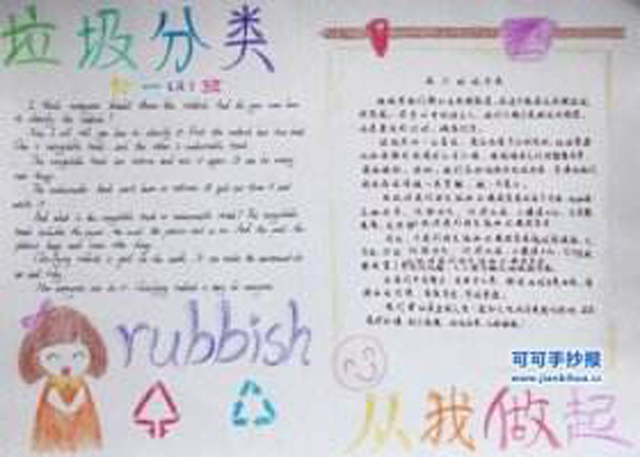 我們每個(gè)人一天雖只制造出一公斤左右的量,但是整個(gè)地區(qū)加起來(lái),所產(chǎn)生的垃圾量的總和就相當(dāng)大。因此,解決垃圾問(wèn)題,首先就是以垃圾減量開(kāi)始,然后做到分類回收,最后才是處理。我們平時(shí)所說(shuō)的“垃圾減量”,實(shí)際上有兩層含義:1.減少個(gè)人垃圾的生產(chǎn)量:2.拓展垃圾用途,廢物利用,使垃圾不成為垃圾;垃圾分類精美手抄報(bào)有分類垃圾桶網(wǎng)收集整理。