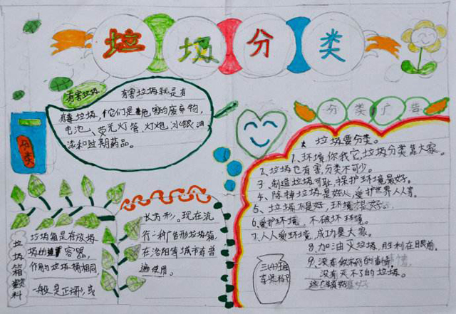 垃圾分類可以分為四種,有可回收垃圾,其他垃圾,餐廚垃圾和有害垃圾??苫厥绽侵福哼m宜回收循環(huán)使大自然是我們的朋友,它可以給我們帶來清新的空氣……所以我們要保護(hù)大自然。我建議,要舉行一個(gè)垃圾分類,讓大自然變得更加美麗。