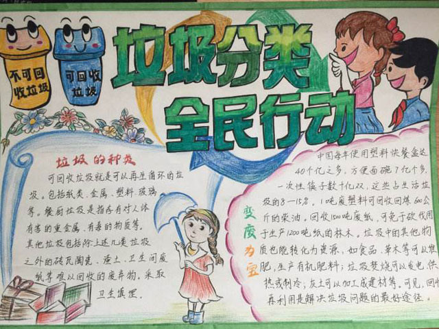 少年強則中國強,少年垃圾分類則中國綠水藍天。垃圾分類,功在當代,利在千秋,任重道遠,需要這個社會中的每一分子齊心協(xié)力,萬眾一心。小學生雖然年小,卻擁有成年人沒有的赤子之心,在這個時候對他們進行垃圾分類觀念的導入,讓他們明白金山銀山,不如綠水青山,在他們長大后,才能積極參與垃圾分類,環(huán)境保護的國家政策當中。下面的垃圾分類手抄報小學生專用由分類垃圾桶廠家從網絡收集整理;