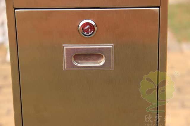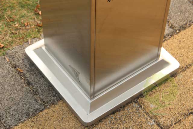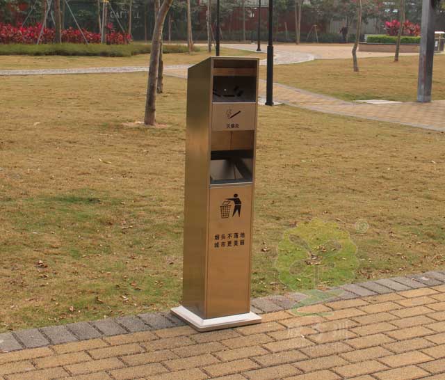 C-620圓形煙灰柱垃圾桶采用優(yōu)質(zhì)不銹鋼剪切、組裝、焊接、絲印而成,不銹鋼具有很好的堅(jiān)固耐用,防水防銹,時(shí)尚美觀作用。它包括外套管、煙灰投放口、內(nèi)筒、煙灰盒。外套管的底端固定連接在支座上,外套管的側(cè)壁上設(shè)有煙蒂置入口,內(nèi)套管用于集中收納從外套管的煙蒂置入口投入的煙蒂,內(nèi)套管設(shè)在外套管的內(nèi)管腔中,內(nèi)內(nèi)套管的開口端朝上,煙蒂置入口與內(nèi)套管的開口相連通,以使得從煙蒂置入口投入的煙蒂可從內(nèi)套管的開口端落入到內(nèi)套管的內(nèi)管腔中。