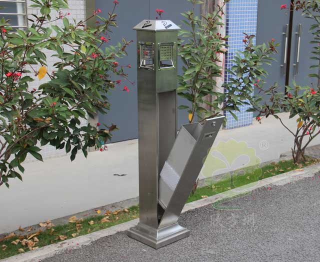 C-279C金屬煙灰柱采用優(yōu)質(zhì)不銹鋼剪切、組裝、焊接、絲印而成,它包括外套管、支座、內(nèi)套管、煙灰盒、底座。外套管的底端固定連接在支座上,外套管的側(cè)壁上設有煙蒂置入口,內(nèi)套管用于集中收納從外套管的煙蒂置入口投入的煙蒂,內(nèi)套管設在外套管的內(nèi)管腔中,內(nèi)內(nèi)套管的開口端朝上,煙蒂置入口與內(nèi)套管的開口相連通,以使得從煙蒂置入口投入的煙蒂可從內(nèi)套管的開口端落入到內(nèi)套管的內(nèi)管腔中;