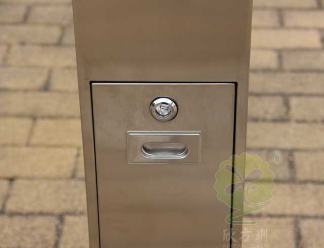 C-279C金屬煙灰柱規(guī)格250*250*1185mm,呈長條傳,側(cè)面有三角鑰匙,可以打開側(cè)門,方便清理位于內(nèi)套管的煙蒂煙灰,底座分兩種,一種是室內(nèi)采用的,在底部裝有防滑墊,一種是戶外采用的,底部使用膨脹螺絲固定。