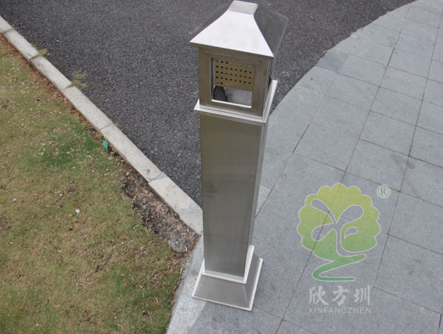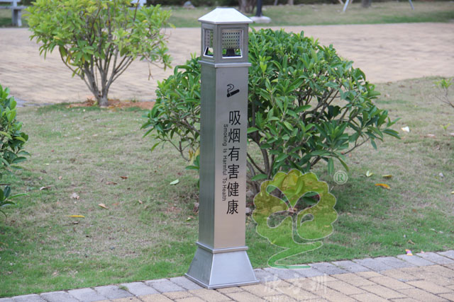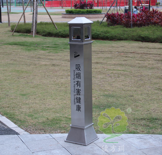 C631公共場所滅煙柱采用優(yōu)質(zhì)不銹鋼剪切、組裝、焊接、絲印而成,不銹鋼具有很好的堅(jiān)固耐用,防水防銹,時(shí)尚美觀作用。它包括外套管、煙灰投放口、內(nèi)筒、煙灰盒。外套管的底端固定連接在支座上,外套管的側(cè)壁上設(shè)有煙蒂置入口,內(nèi)套管用于集中收納從外套管的煙蒂置入口投入的煙蒂,內(nèi)套管設(shè)在外套管的內(nèi)管腔中,內(nèi)內(nèi)套管的開口端朝上,煙蒂置入口與內(nèi)套管的開口相連通,以使得從煙蒂置入口投入的煙蒂可從內(nèi)套管的開口端落入到內(nèi)套管的內(nèi)管腔中。