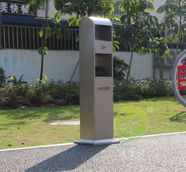 C626復(fù)合型果皮箱滅煙柱規(guī)格330*320*1120mm,呈方形,側(cè)面有三角鑰匙,可以打開(kāi)側(cè)門(mén),方便清理位于內(nèi)套管的煙蒂煙灰,底座分兩種,一種是室內(nèi)采用的,在底部裝有防滑墊,一種是戶(hù)外采用的,底部使用膨脹螺絲固定。外形兼具美觀性和功能性,實(shí)現(xiàn)煙蒂垃圾雙投放功能,上部分收集煙灰煙蒂,下部分收集果皮垃圾。隔緣分離,杜絕火災(zāi)。