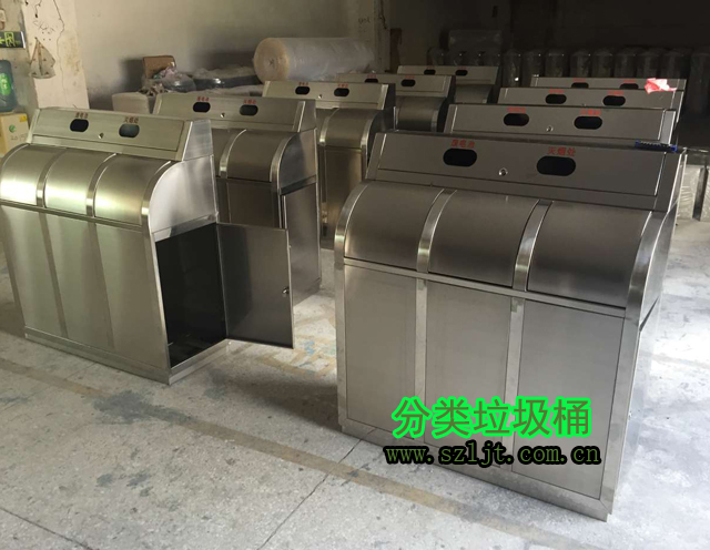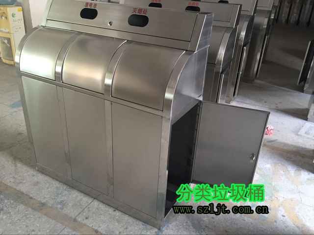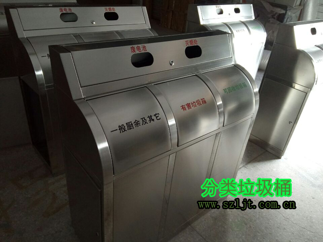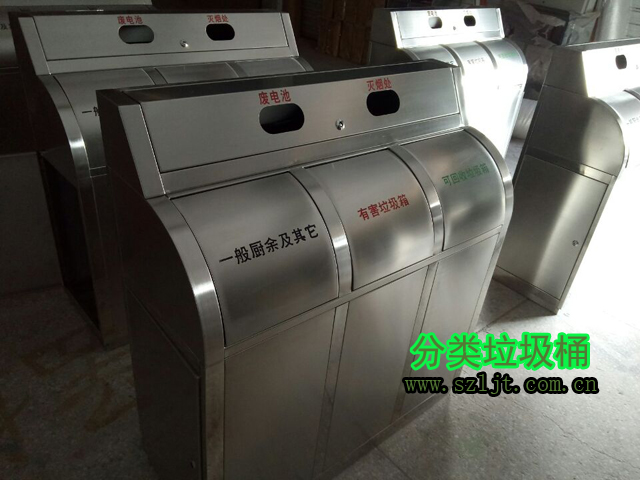 一般來說垃圾分為可回收垃圾和不可回收垃圾兩大類,但是對于小社區(qū)來說這兩種分類方式太過于簡單,不能滿足社區(qū)居民日常生活中產(chǎn)生的生活垃圾全面覆蓋要求。小區(qū)居民所產(chǎn)生的廚余垃圾不能簡單的歸類于可回收垃圾或不可回收垃圾,從成分上來說,它是可以回收的,因為它可以經(jīng)過加工制作成飼料、肥料,但是由于廚余垃圾容易變質(zhì)腐爛,故需要及時按時處理。且容易弄臟其他類型的可回收垃圾,增加其他可回收垃圾的分類回收難度,所以我們最好將廚余垃圾單獨化作一個大類,基于這種考慮,欣方圳生產(chǎn)設(shè)計了小社區(qū)物業(yè)不銹鋼分類垃圾桶,反響非常好。
