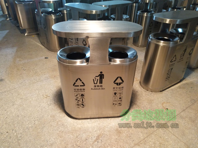 【產(chǎn)品顏色】:以不銹鋼材質(zhì)本色為底色,絲印的圖案用黑河表示,分別代表可回收物也其他垃圾兩大類;顏色對比鮮明和諧,簡潔大方,實用美觀,還可根據(jù)客戶需求定制。