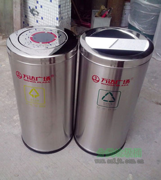 【產(chǎn)品顏色】:以不銹鋼材質(zhì)本色為底色,絲印的圖案用黃綠兩色表示,分別代表可回收物也其他垃圾兩大類;同時(shí)還絲印上客戶的標(biāo)志,顏色對(duì)比鮮明和諧,簡(jiǎn)潔大方,實(shí)用美觀,還可根據(jù)客戶需求定制。