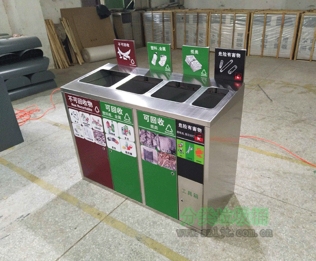 C502不銹鋼戶外分類環(huán)保垃圾桶是一款適用于小區(qū)、社區(qū)、學校、工廠、宿舍等戶外場所的四分類垃圾桶。這款垃圾桶分為不可回收物、塑料金屬、紙類、有害物四大類。這種分類方式的科學之處在于,在我們的生活當中,塑料、金屬、紙類是我們能大量產生的有回收價值的垃圾。塑料、金屬、紙類的回收價值非常高,一頓塑料回收可以得到0.7噸新的塑料,一頓鋁制飲料罐可以回收0.7噸鋁塊,一頓廢紙回收可以少砍30棵成年大樹。而有些有害垃圾對環(huán)境的破壞非常之大,比如廢棄電池、油漆、電燈泡、藥品,它們對土地水源的污染往往會持續(xù)上百年也不能輕易清除,所以對它們進行單獨分類,用特殊正確的方法正確處理非常必要。