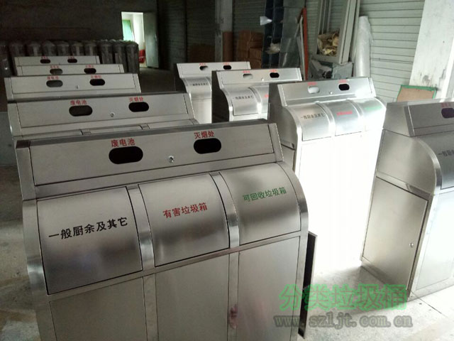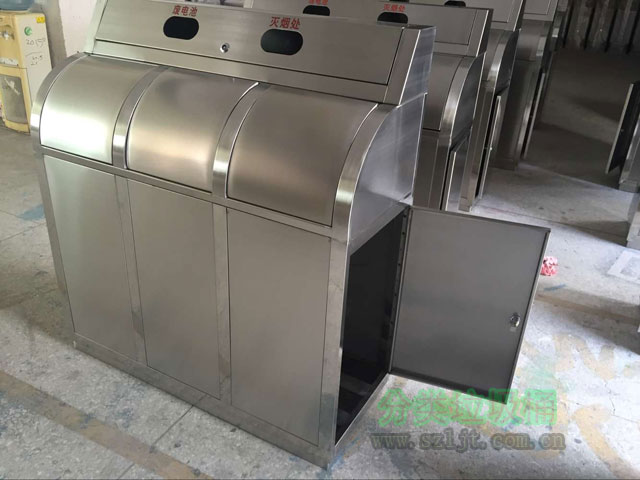 不銹鋼三分類(lèi)垃圾桶工藝精湛,品質(zhì)高檔,深受客戶好評(píng)。它采用優(yōu)質(zhì)不銹鋼板作為原材料,制作出來(lái)的垃圾桶堅(jiān)固耐用,光滑不生銹。整個(gè)垃圾桶制作非常注重人性化的小細(xì)節(jié),表角都作了折彎處理,沒(méi)有利角不割手,防止意外割傷。