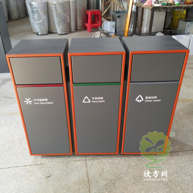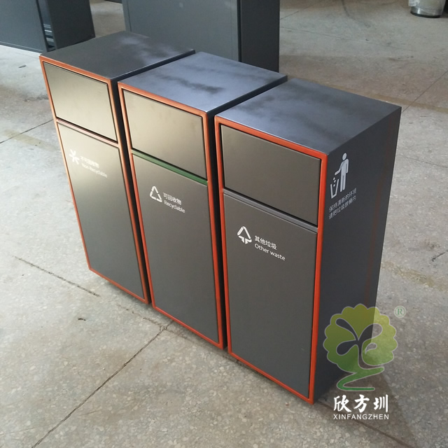 噴塑組合式不銹鋼分類垃圾箱采用201#,202#,304#優(yōu)質(zhì)不銹鋼材料模壓成型,堅固耐用,不易破損;耐火安全,抗高低溫,適合各種惡劣氣候條件;金屬亮澤,高雅美觀,廣泛適用于各種機場、商場高檔場所;內(nèi)外表面光潔,減少垃圾殘留,易于清潔;配置鍍鋅板內(nèi)桶,便于垃圾清倒;激光切割開料,尺寸精準(zhǔn),投口無縫焊接成型,打磨拋光處理圓滑不割手。