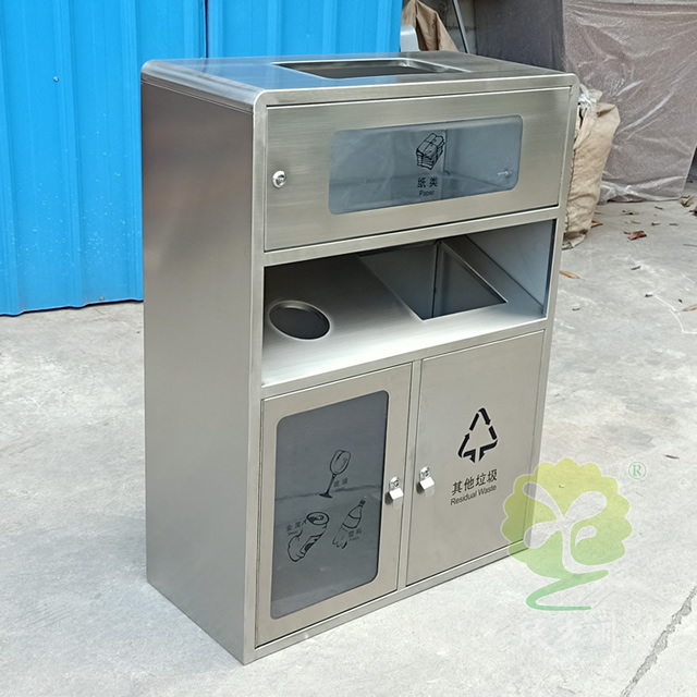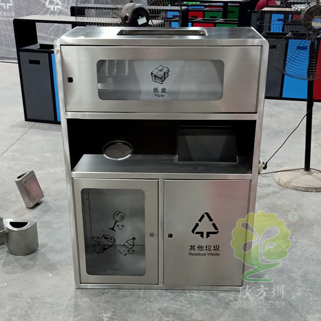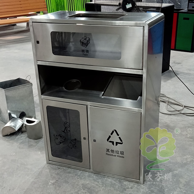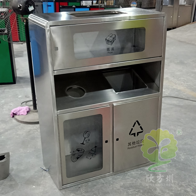 透明不銹鋼分類垃圾桶采用201#,202#,304#優(yōu)質(zhì)不銹鋼材料模壓成型,堅(jiān)固耐用,不易破損;耐火安全,抗高低溫,適合各種惡劣氣候條件;金屬亮澤,高雅美觀,廣泛適用于各種機(jī)場(chǎng)、商場(chǎng)高檔場(chǎng)所;內(nèi)外表面光潔,減少垃圾殘留,易于清潔;配置鍍鋅板內(nèi)桶,便于垃圾清倒;激光切割開料,尺寸精準(zhǔn),投口無(wú)縫焊接成型,打磨拋光處理圓滑不割手,欣方圳不銹鋼分類垃圾桶制作師傅有著多年經(jīng)驗(yàn)的熟手,每一道環(huán)節(jié)工藝成熟,質(zhì)量可靠,確??蛻羧缙诮桓厄?yàn)收。