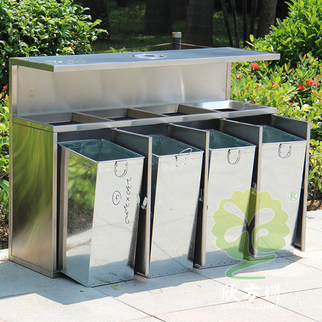 戶外市政街道四連體不銹鋼垃圾箱是欣方圳設(shè)計生產(chǎn)的一款經(jīng)典熱銷垃圾桶,這款垃圾桶雖然使用不喜歡制作而成,但是外形采用了方形單筒,使其看起來有一股自然大方氣質(zhì),特別適合各種歷史景區(qū)、戶外公園、別墅小區(qū)、學校廣場等場景使用。這款垃圾桶外表經(jīng)過防腐工藝處理,防水防腐蝕、經(jīng)久耐用、工藝精湛、物美價廉。如果你對這款垃圾桶感興趣,請直接聯(lián)系我們報價。
