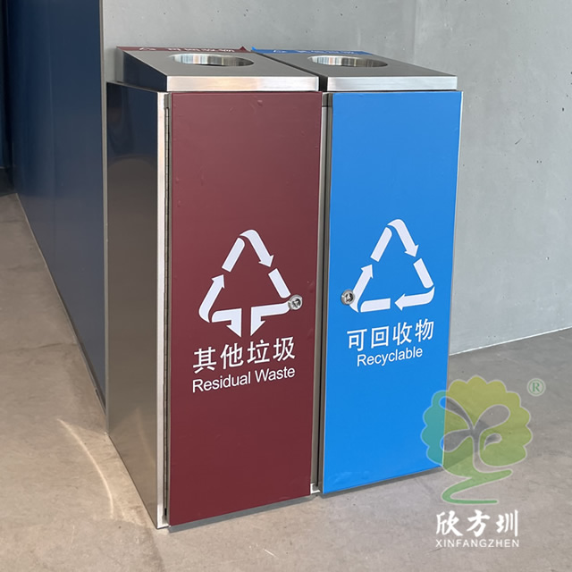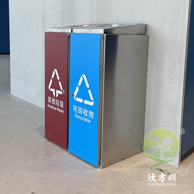 室內(nèi)直投口方形連體不銹鋼分類垃圾桶是深圳市龍華區(qū)文化廣電旅游體育局的一位采購在我們工廠定做一款桶,外桶材質(zhì)采用了201#不銹鋼板制造,方形桶圓形直投口設(shè)計,可以組合式擺放兩分類或者三分類四分類,垃圾桶門板采用四色圖紙擁有國標(biāo)最新分類標(biāo)識,門板三角鑰匙可開門取出內(nèi)置的內(nèi)膽。