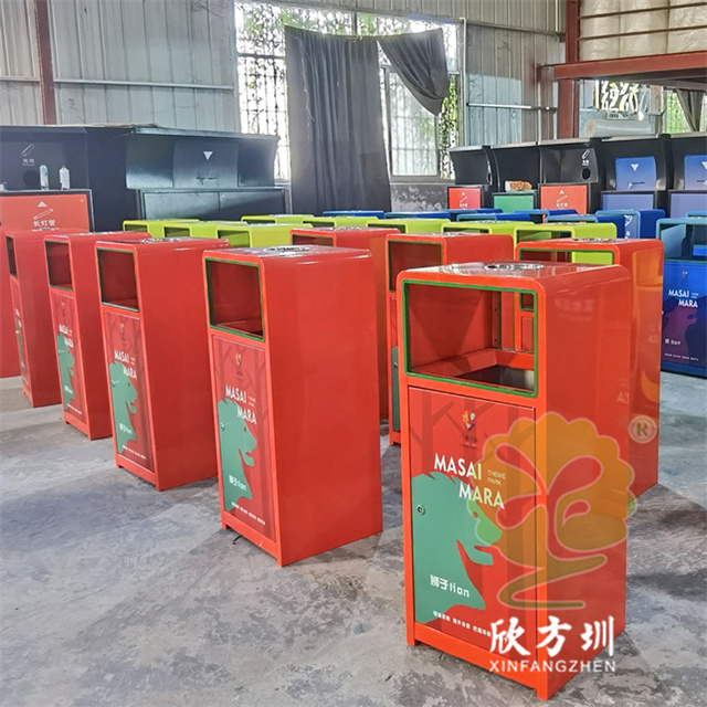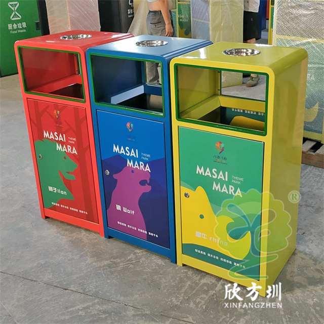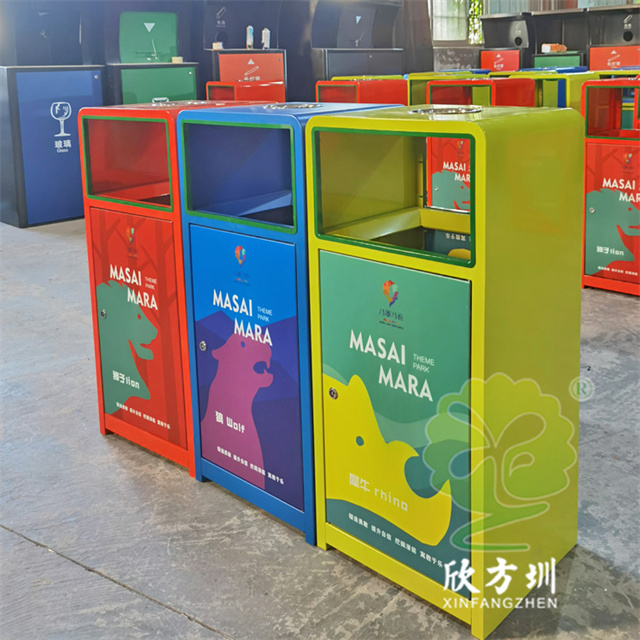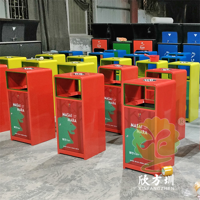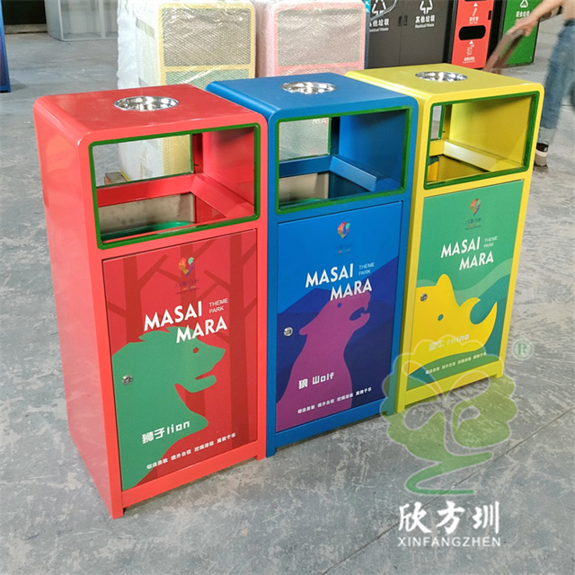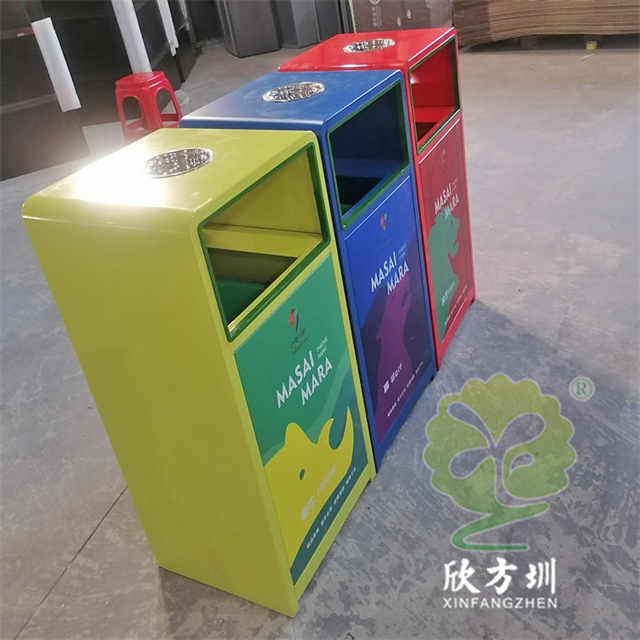 加厚組合式三色不銹鋼分類垃圾桶采用了2.00mm厚304#不銹鋼板制造而成,一般常規(guī)的不銹鋼板厚度我們廠家都會(huì)使用1.00mm厚,室外組合式方形雙面投口設(shè)計(jì),表面采用了三色噴涂噴塑上色,垃圾桶門板應(yīng)用了UV打印抽象卡通圖案,頂部中心位置帶碗形煙灰盅,門板左中間帶三角鑰匙鎖頭,我們廠家支持板材、厚度、表面工藝定制。