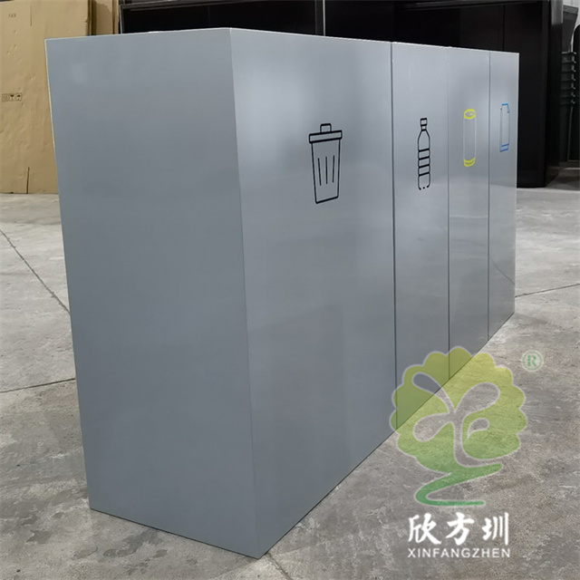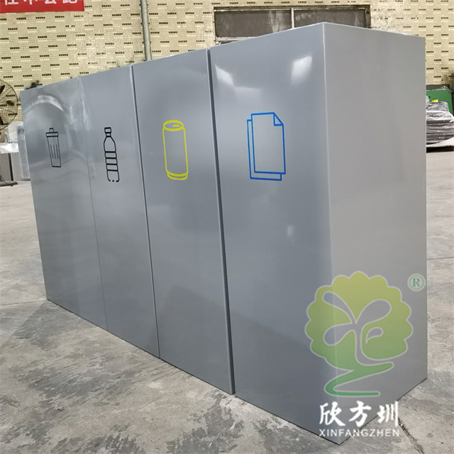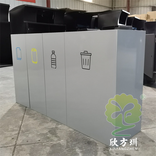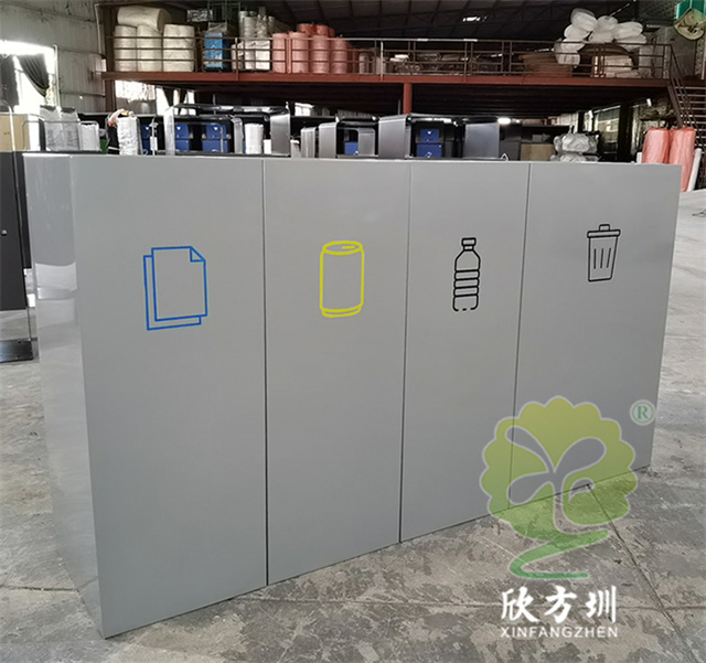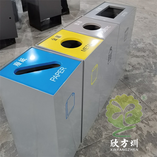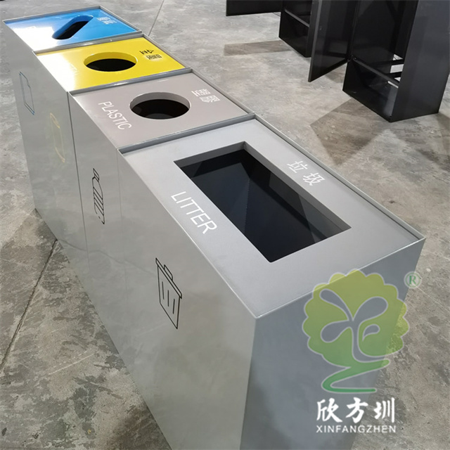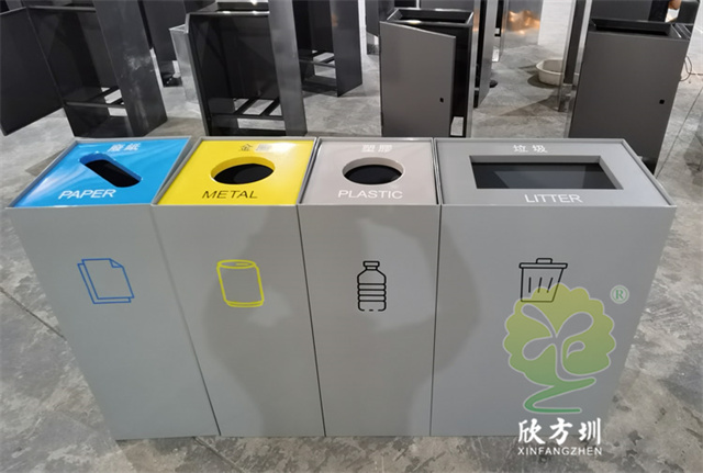 室內(nèi)商用組合不銹鋼4分類垃圾桶采用了1.00mm厚201#不銹鋼板制造而成,立式直投口組合式四分類設(shè)計(jì),分別可以回收紙類、金屬、塑料和帶一個(gè)大一點(diǎn)的其他垃圾桶,投口蓋好和正反面絲印中英文文字跟分類標(biāo)識,紙類投口藍(lán)色噴塑跟藍(lán)色油墨絲印蓋子白色絲印,金屬黃色噴塑跟黃色油墨絲印蓋子黑色絲印,塑料淺灰色噴塑和黑色絲印蓋子白色絲印,其他垃圾灰色噴塑蓋子跟桶一樣的顏色桶身標(biāo)識黑色絲印蓋子白色油墨絲印,這樣可以明顯區(qū)分辨認(rèn)桶的分類。