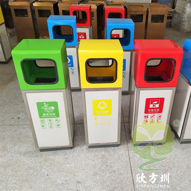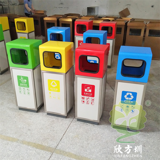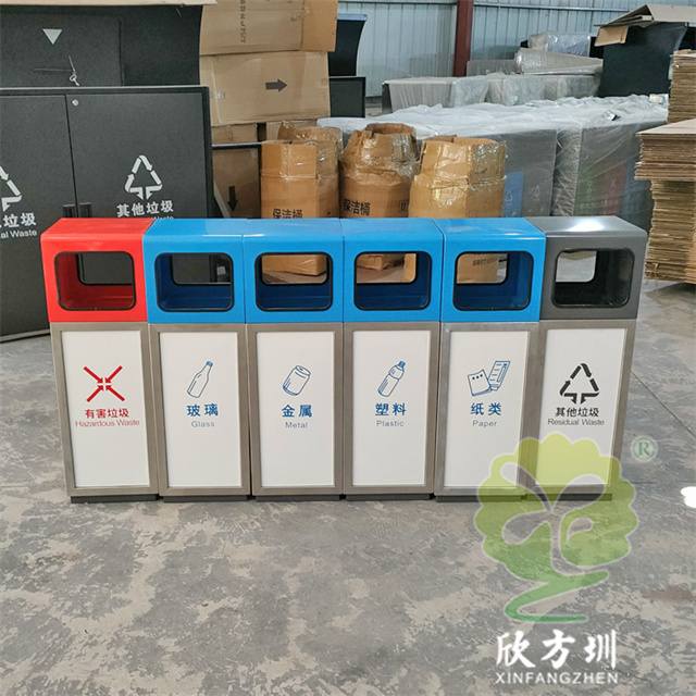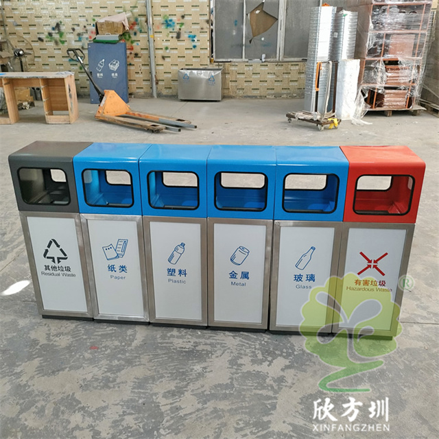 室外學(xué)校組合式不銹鋼分類回收箱桶身使用了201#不銹鋼1.0厚的板材制造,雙面投口方形單筒組合式擺放分類設(shè)計(jì),表面采用了多色彩噴塑可以按照用戶需要烤漆,可絲網(wǎng)印刷玻璃、金屬、塑料、紙類、其他垃圾、有害垃圾等最新國(guó)標(biāo)分類標(biāo)識(shí),取出頂部投口可取出內(nèi)置的內(nèi)筒方便清理廢物。