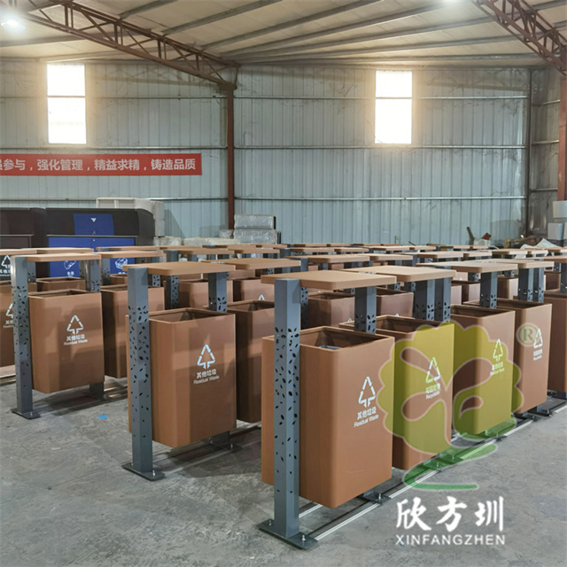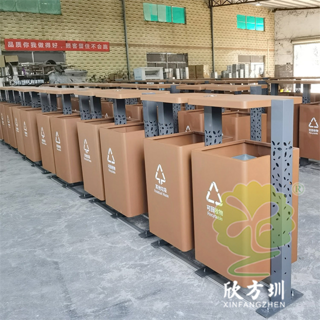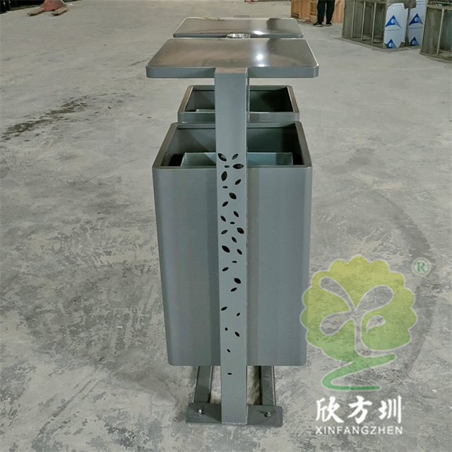 廣東惠州景區(qū)鏤空立柱不銹鋼分類垃圾桶整體1.0mm厚噴塑外筒,方形任意組合式多分類設(shè)計(jì),可以選擇用不銹鋼板制作桶身,桶身表面噴涂噴塑了米白色,背后可使用三角鑰匙開始開門取出內(nèi)筒,內(nèi)筒鍍鋅板0.4mm厚,正面絲印了最新國(guó)標(biāo)分類標(biāo)識(shí),有現(xiàn)成的網(wǎng)版可以免費(fèi)絲印分類標(biāo)識(shí)。