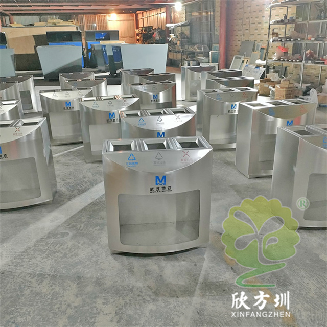 武漢地鐵站室內(nèi)透明三分類不銹鋼垃圾桶采用了優(yōu)質(zhì)的201不銹鋼1.0mm厚的板材制造,透明部分采用了3.0mm厚的亞克力板,三分類方形設(shè)計(jì),這款垃圾桶不含內(nèi)筒,直接套用透明塑料垃圾袋使用,絲網(wǎng)印刷了可回收物、其他垃圾、有害垃圾以及武漢地鐵logo標(biāo)識(shí)。