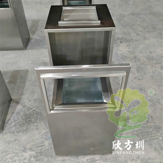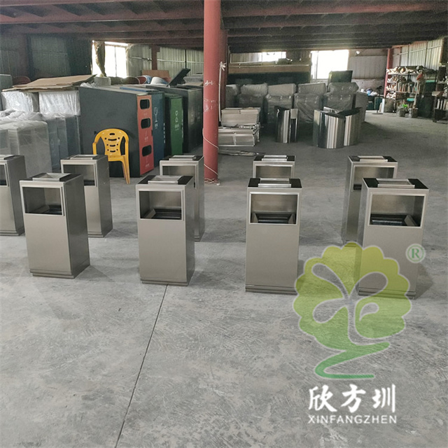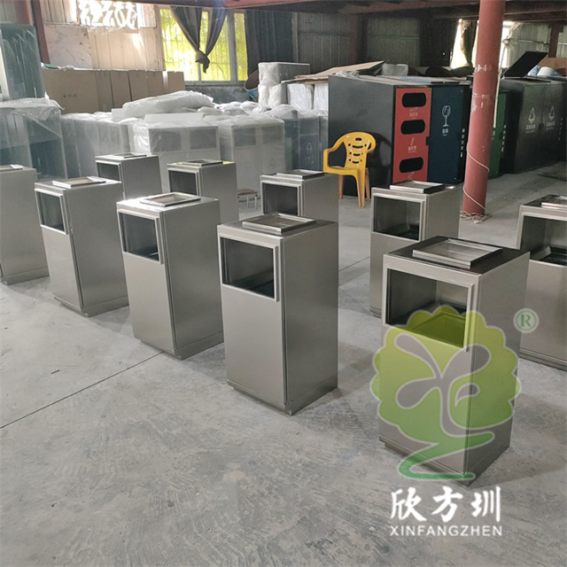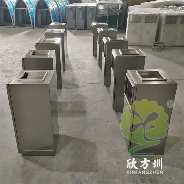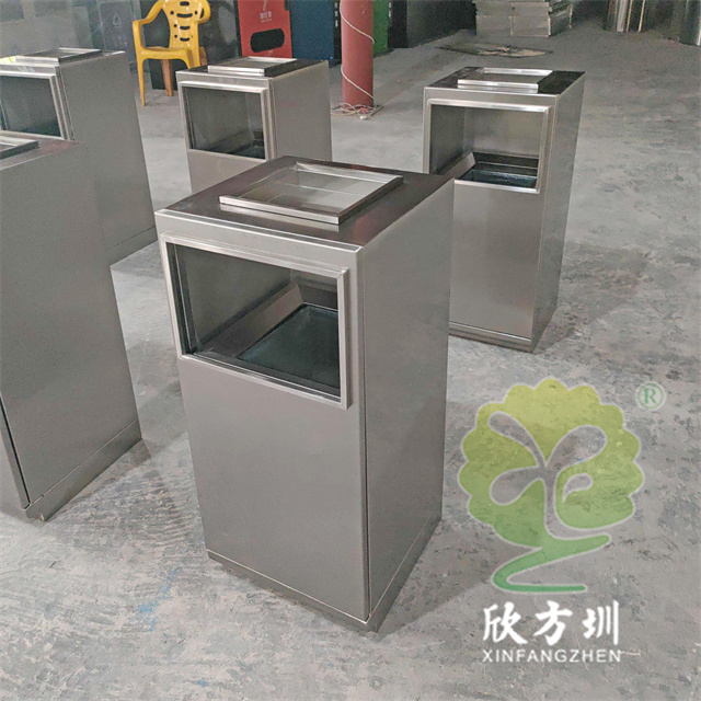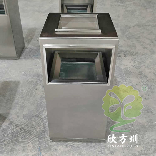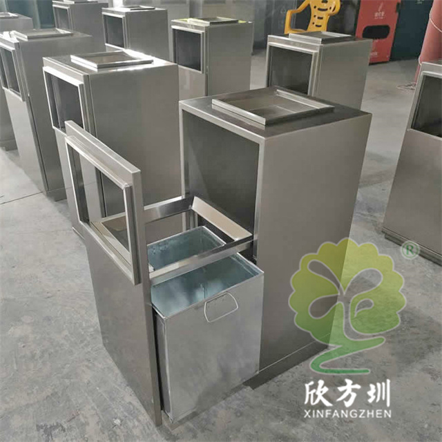 防指紋封油抽拉組合式不銹鋼分類垃圾桶可以使用201或304不銹鋼板制造,方形滑軌抽拉式組合式設計,表面做了無指紋封油處理,投口方形折邊有效防止割手,頂部位置帶煙灰盅,不需要也可以不要煙灰盅,正面可以絲印分類標識以及企業(yè)logo。