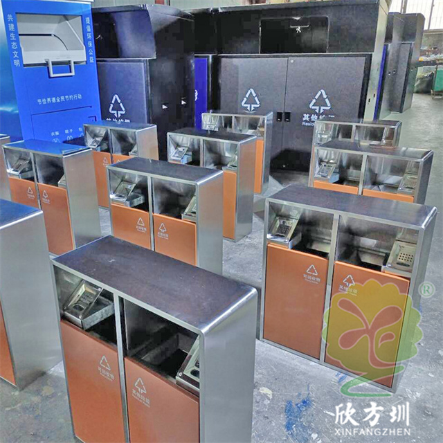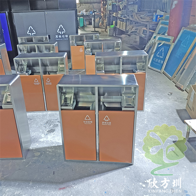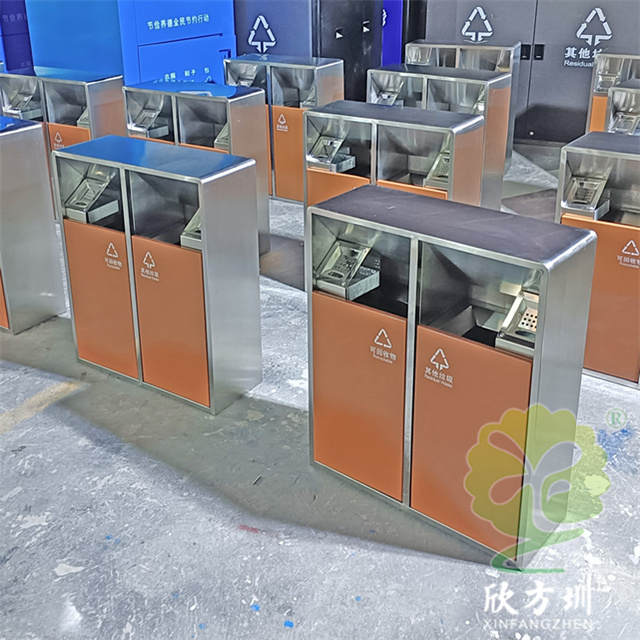 小區(qū)噴粉雙煙灰盅不銹鋼兩分類垃圾桶采用304#不銹鋼1.0mm厚的板制作而成,戶外方形兩連體設(shè)計(jì),不銹鋼框架不銹鋼本色,門板高溫烤漆,單面投口雙煙灰盅,可以定制絲網(wǎng)印刷最新國(guó)標(biāo)中英文分類標(biāo)識(shí)和企業(yè)logo,支持做電鍍、噴粉、UV打印、腐刻等工藝。